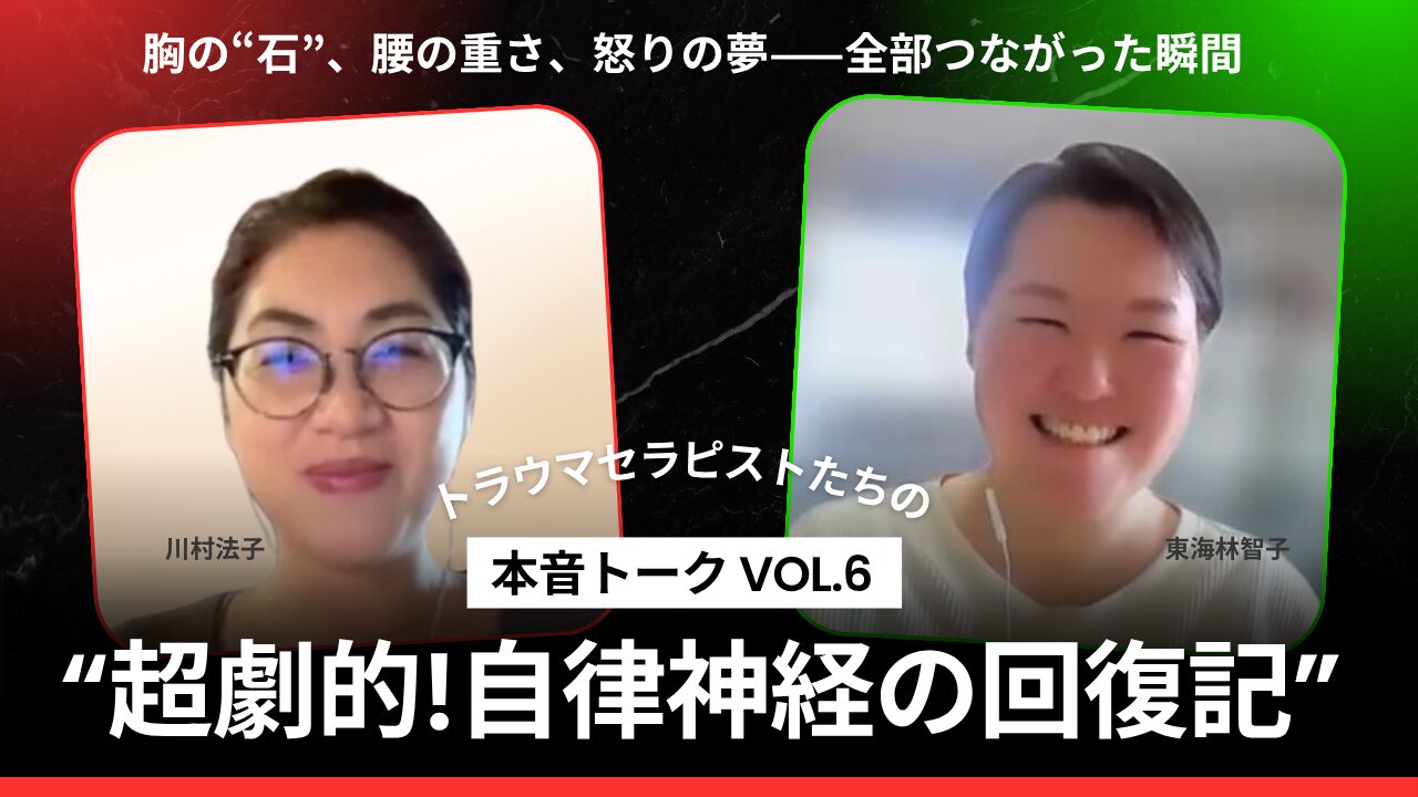 トラウマサバイバーの自律神経の課題とは/上半身の課題〜呼吸のしずらさと胸の中の“石”/下半身の課題〜腰から上がってくる感覚と朝の腰痛/強烈な怒りの夢3連ちゃん!/怒りが抜けた後の身体/仙骨から脳まで上昇するエネルギー〜脊柱起立筋/筋肉と感情のつながりの深さ/血液の流れが足りない時に脳に生じる防御反応/あの頃大嫌いだった体育の意味/食べ物からの癒し/背骨揺らしワークの必要性/姿勢と人格〜巻き肩と猫背の影響/横隔膜上下の重要性/㊙️酸素量増大チートの話/脳内血管が細いトラウマサバイバーでも回復できる!
